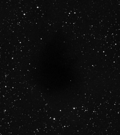 100/150mm - Tato tmavá mlhovina vypadá na fotce jako snadný cíl. Opak je však pravdou..... Vizuálně je v průměru 125mm a okuláru 17,5 - 27mm těžkým cílem. Objekt není snadný, velice slabé "ztmavení" se dá po chvíli vypozorovat, chce to ovšem trpělivost a zkušené oko. Petr