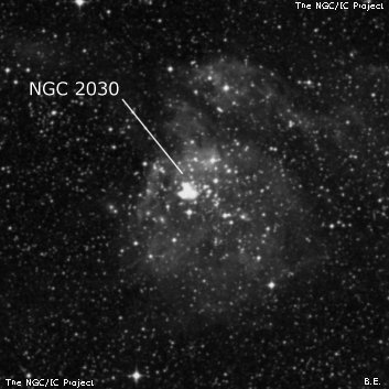 600/800mm - 30" (10/18/17 - OzSky): při zvětšení 202x a 264x + filtr NPB; jedná se o první část pozoruhodné mlhoviny Racka nebo "Hlavy draka", přestože je nejslabší ze tří propojených fleků táhnoucích se z SZ na JV s NGC 2032 a 2036. Nejjasnější část je protáhlý "přička" o velikosti ~2'x40', orientovaný ve směru ZJZ-VSV, přímo na západ od hvězdy 12,2 magnitudy HD 269810. Slabší mlhovina se rozprostírá na sever v přibližně oválném obrysu a obsahuje hvězdu o jasnosti 14,5, takže celková délka NGC 2030 ve směru S-J je přes 2,5'. Velmi slabá mlhovina se zdá spojovat NGC 2030 s jasnějším NGC 2032 přímo na JV.