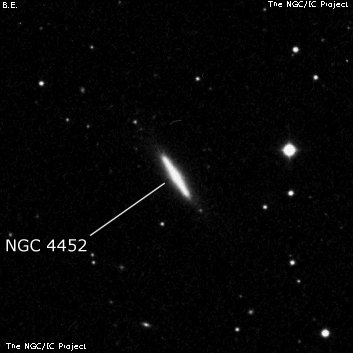 NGC 4452 se zdá být velmi podobná galaxii IC 335, která je také galaxie pozorovaná téměř z boku v kupě Fornax, v souhvězdí Pec.